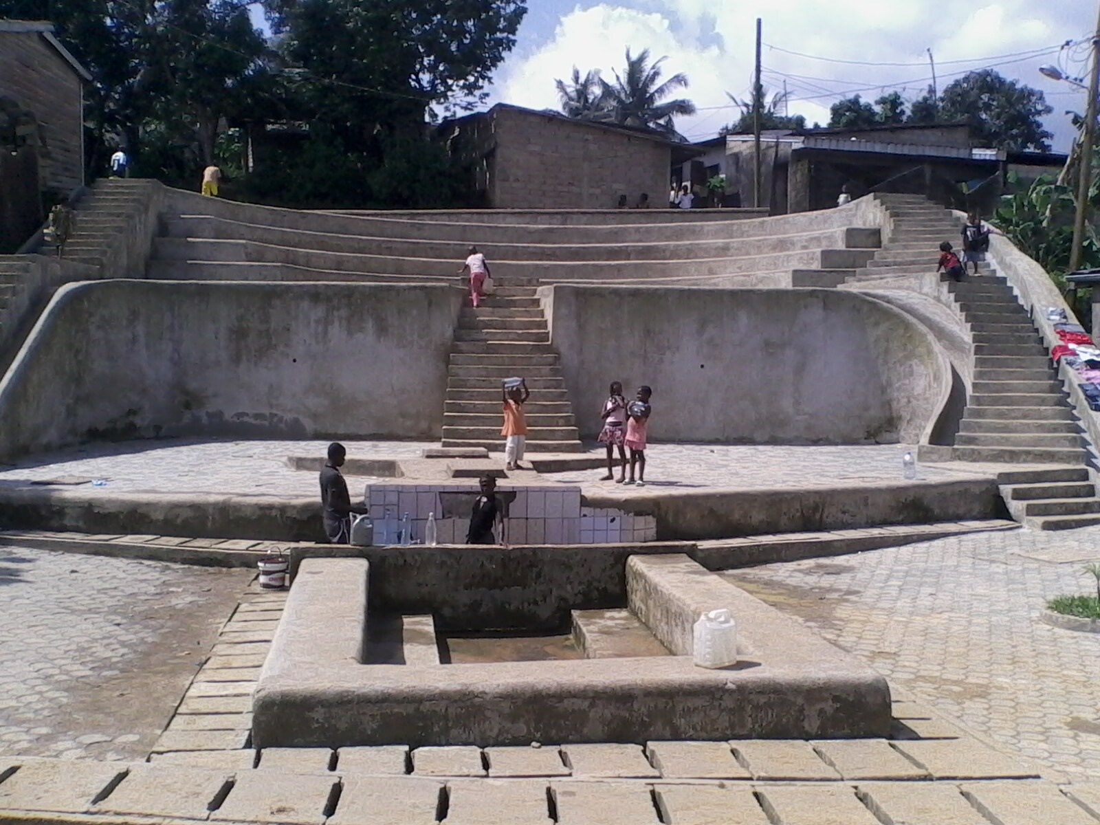Changement de décor. Destination, la zone de recasement de la ville de Douala. Le SUD y a vu grand, très grand. Au Bloc 4, la source d’eau naturelle aménagée (déjà) par Doual’Art en 1996 a été métamorphosée en amphithéâtre à ciel ouvert par l’artiste Belge Philip Aguirre. Le « Théâtre-Source » est appelé à accueillir dans les jours à venir des performances diverses d’art visuels.