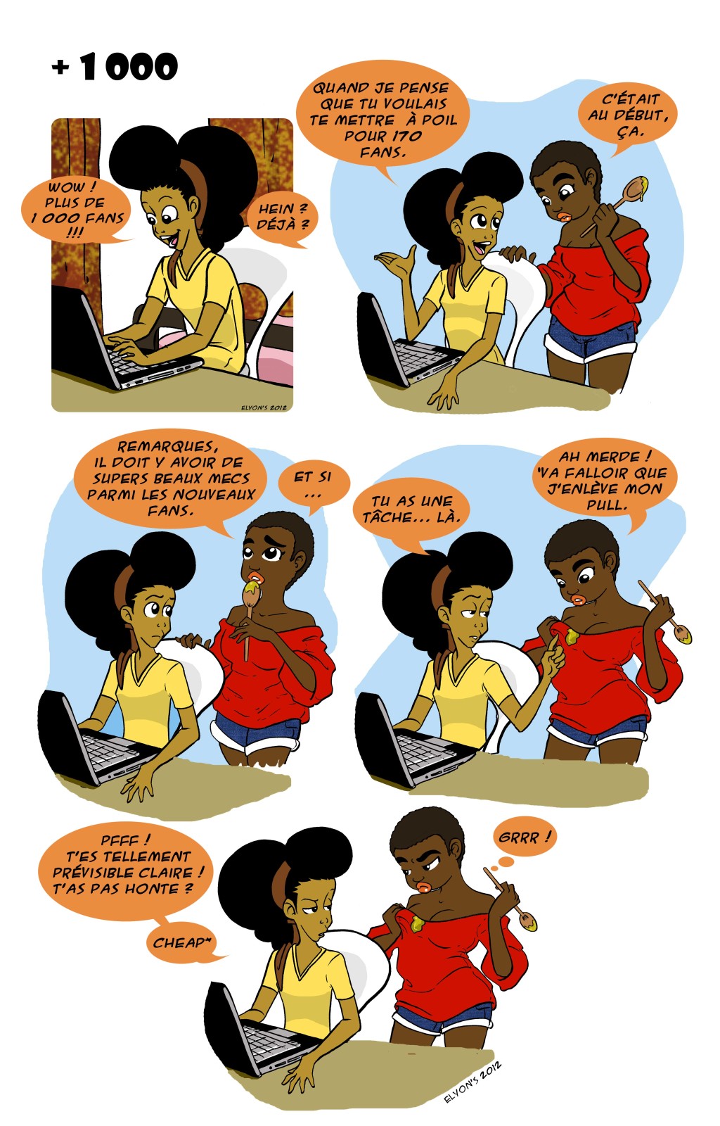 PS : Elyon’s sera l’invitée de « Ma pause Digitale » ce jeudi 16 janvier 2013 dès 18h à l’hôtel Beauséjour de Douala, au Cameroun pour parler de crowfunding. Si tu es dans la ville, fais-y un tour. Tu te feras ta propre idée de l’auteure et de son projet.